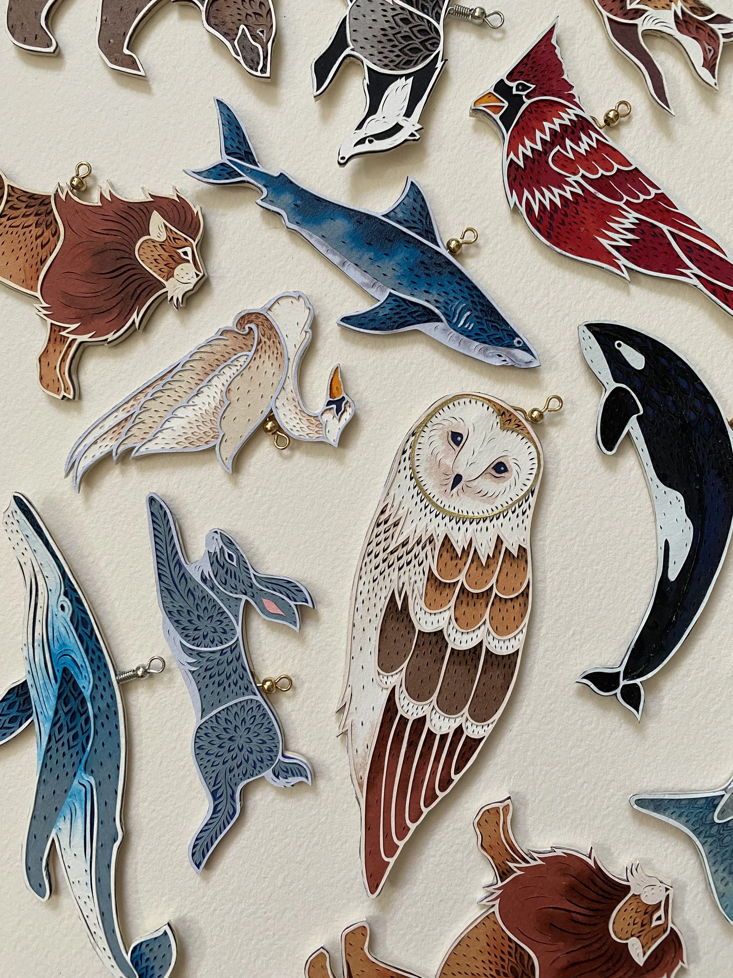 Jennifer Hudson is an award winning cut paper artist and painter. She uses various sized scalpel knives to create delicate lace-like works all cut by hand. She is best known for her imaginative and illustrative nature inspired artworks. Her work has been shown in multiple galleries and museums. She is a member of the Guild of American Papercutters, The International Association of Hand Papermakers and Paper Artists, The Beautiful Bizarre Artist Directory, and a Signature Member of the Society of Animal Artists. She has sold over 200 pieces of original work. Please enjoy browsing her portfolio. Scroll below to view new arrivals, featured prints of the month, upcoming exhibits and more!