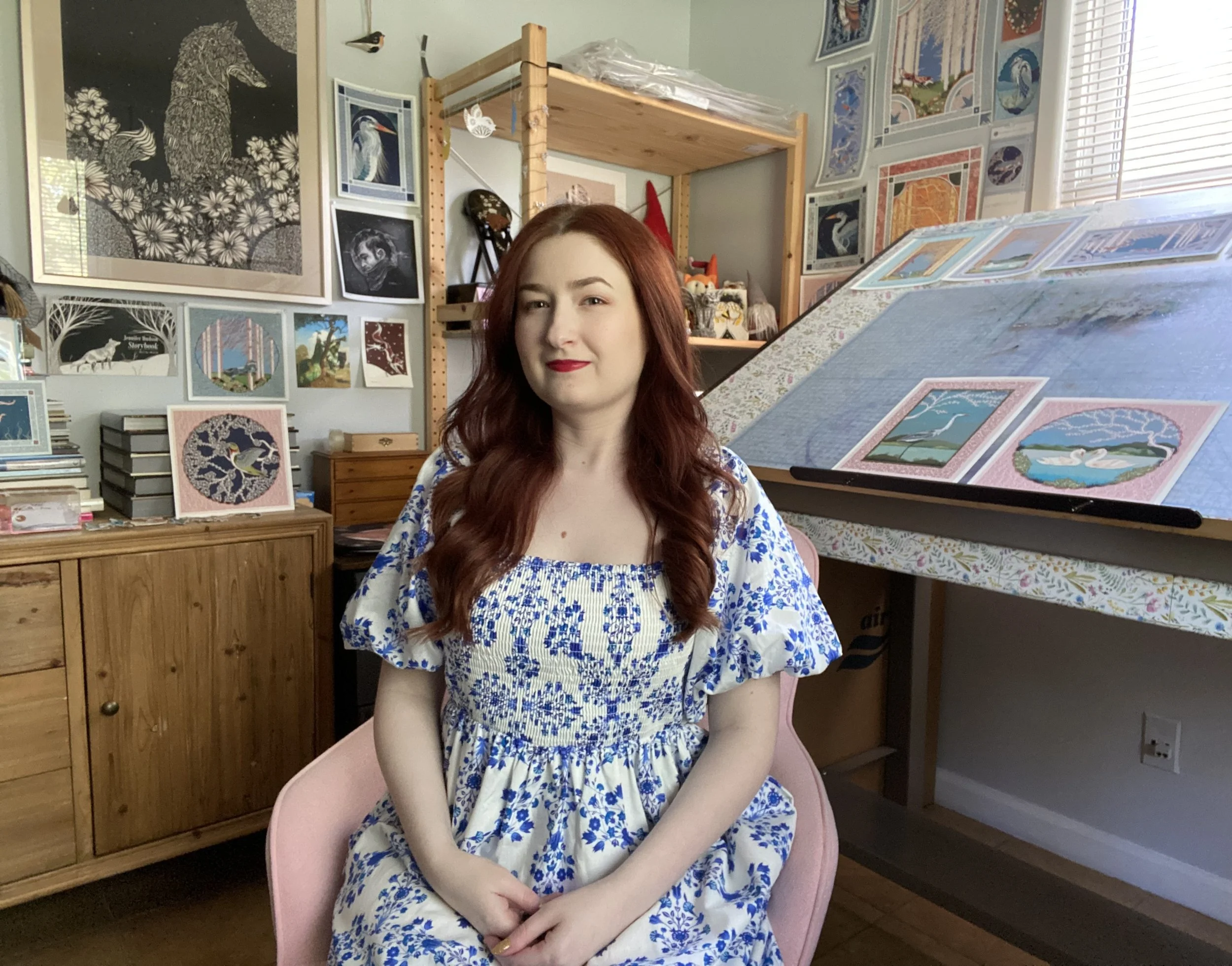 Jennifer Hudson is an award winning Maryland based cut paper artist and painter. She began her career as a painter with an emphasis on realistic nature scenes and fantasy-based illustrations. She graduated from the Baltimore School for the Arts in 2014 with a concentration in painting. After graduating Hudson became intrigued by the world of contemporary paper art. She uses various sized knives to hand cut delicate works that display movement, texture and dimension. She combines several layers of cut paper to attain highly detailed three-dimensional works. Hudson’s love of the natural world is evident in the use of flora and animals in her work. She specializes in wild life art. Continuing motifs include foxes, birds, horses and delicate lace-like structures. She became a member of the Guild of American Paper cutters in 2020 and a member of the International Association of Hand Papermakers and Paper Artists in 2024. Hudson is also a signature member of the Society of Animal Artists. She has shown her work in numerous galleries and museums across the United States. She has sold over 200 pieces of original work. When she is not creating Hudson enjoys spending time with her two dogs.